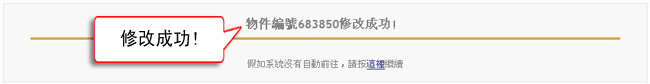 四、資料修改完成後,按最後點選「完成送出」鈕即可,系統會提示您該物件已經修改成功。
