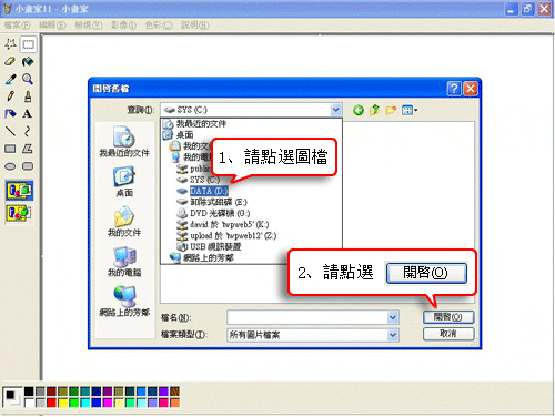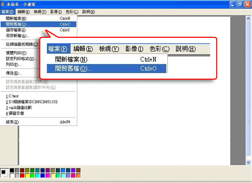 二、打開小畫家後,從左上角【檔案】-> 選擇【開啟舊檔】: