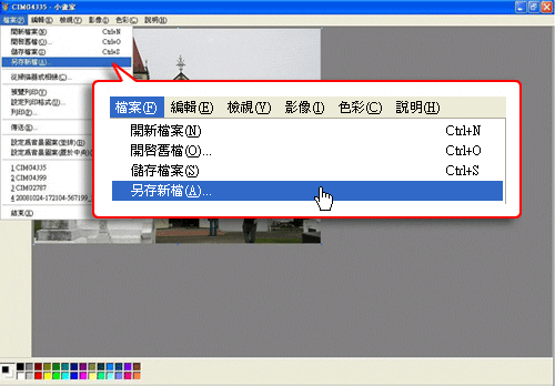 六、完成後您會發現照片的範圍已經縮小,接下來要將圖檔存起來,選擇左上角【檔案】->【另存新檔】: