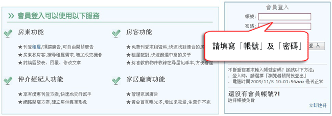 一、若您要刊登求租,請您先點選會員中心並登入帳號密碼。