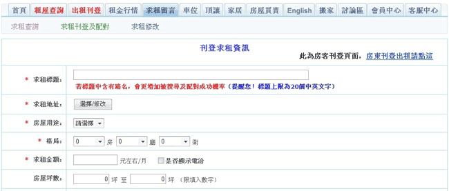 求租刊登步驟如下: