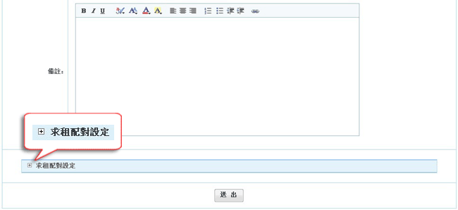 五、點選下方的「送出」即完成求租刊登,您可回到求租留言首頁瀏覽刊登好的資訊,並且留意系統寄送的租屋配對通知。