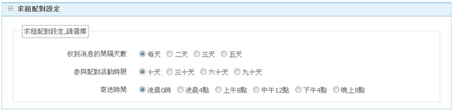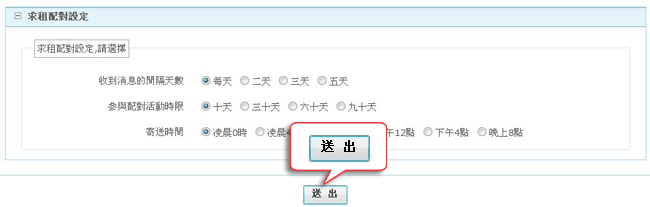 四、點選下方的求租配對設定,系統將自動為您寄發符合需求的物件。(使用這項功能請務必填寫上方表單中的Email)